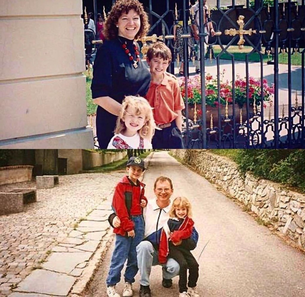 Sadly, I have no pictures from that trip. The photos that we took were developed as slides, since many of the shots were of tomato plants or fields. So I rely on my memories: our driver, Jiri, carrying 5-year-old Alice on his shoulders and stopping to buy her a huge bag of apricots. Acres of sunflowers, swaying in the breeze. Delicious pastries in a coffee shop. But I can share pictures that I think demonstrate that those five months were a happy time. I know the experience had a huge impact on all our lives.