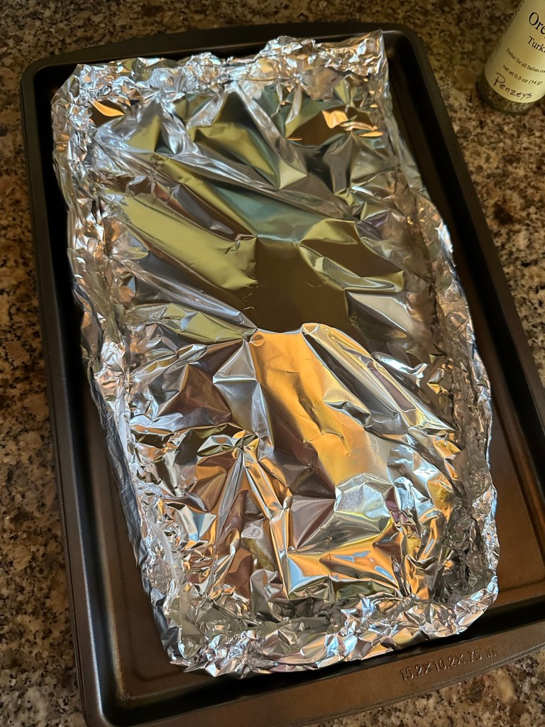 Preheat the oven to 375 degrees. Line a sheet pan with enough foil to hang over the pan on all sides. Top the foil with parchment paper.