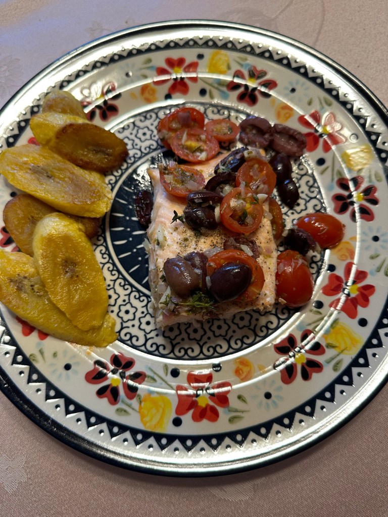 But mixing cuisines can be a lot of fun, and that’s what we did a few days ago. We had picked up a couple of plantains, but of course we had to wait for them to ripen. That took almost two weeks, and at that point, we didn’t have any Latin meals planned. So I served them alongside a Mediterranean-inspired salmon recipe. Perfect! It sounds like an unconventional combination, but it really worked.