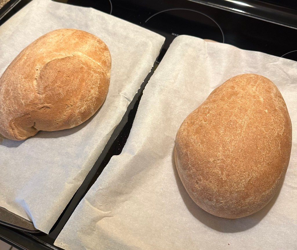 It’s an odd day here. The hurricane in the gulf isn’t really causing any problems for us, just some rain squalls and enough wind to keep the wind chimes ringing continuously. But it’s dreary, and I’m home alone. So I decided to bake bread.