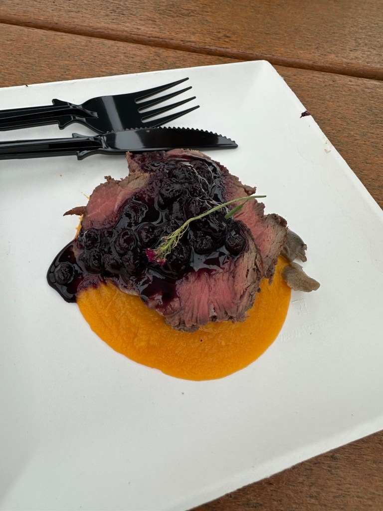 We did visit four kiosks, two for food and two for drinks. My favorite was grilled bison, which was served over butternut squash purée and roasted mushrooms. Topped with huckleberry gastrique, I cut little pieces and ate slowly to savor it as long as I could. The paella nigra from the Spainish cuisine kiosk was also delicious: squid ink rice with scallops and shrimp. Supposedly there was octopus in the dish as well, but I couldn’t identify any. It was just a bit spicy, definitely spicier than any other paella I’ve had.