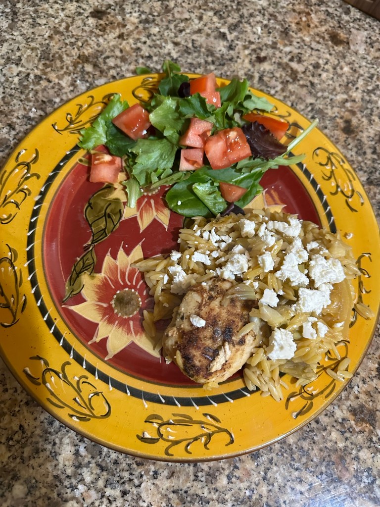The result was absolutely delicious. We declared it “a keeper.” The artichokes and orzo were just so good that Ken said it would have been fine without the chicken. And it was quick and easy to cook. Prep was minimal, at least by my standards. We’ll be making this again.
