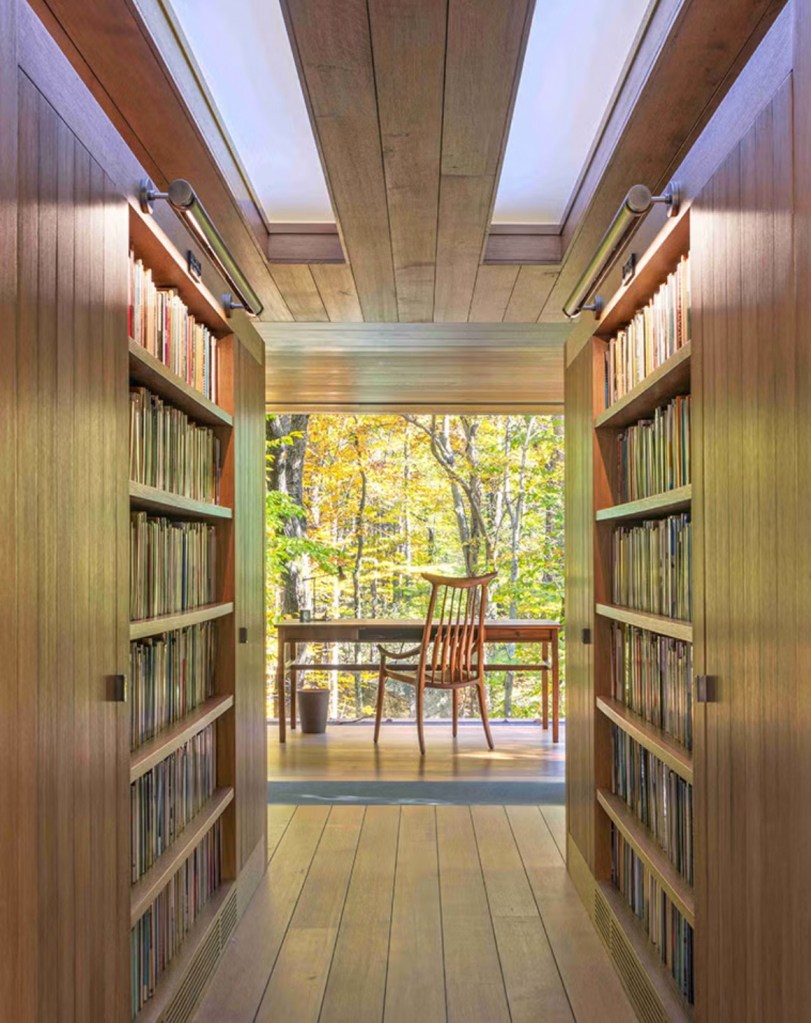 Of course, ultimately I’d need to make some compromises. This final scene, with a lovely view, lots of shelves, and a comfy-looking chair, looks like my idea of home library heaven!