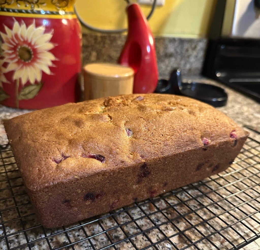 My first choice was an orange-cranberry loaf from the wonderful Taffey Bakery blog. At some point between Thanksgiving and Christmas, Ken and I shared a slice of a similar loaf at Panera and loved it, so that was an easy choice. I followed the directions exactly, as I usually do when I’m baking. The result was the smoothest, creamiest batter I’ve ever made and a perfect looking loaf. Yes, we’ve tasted it, and it’s as good as it looks.