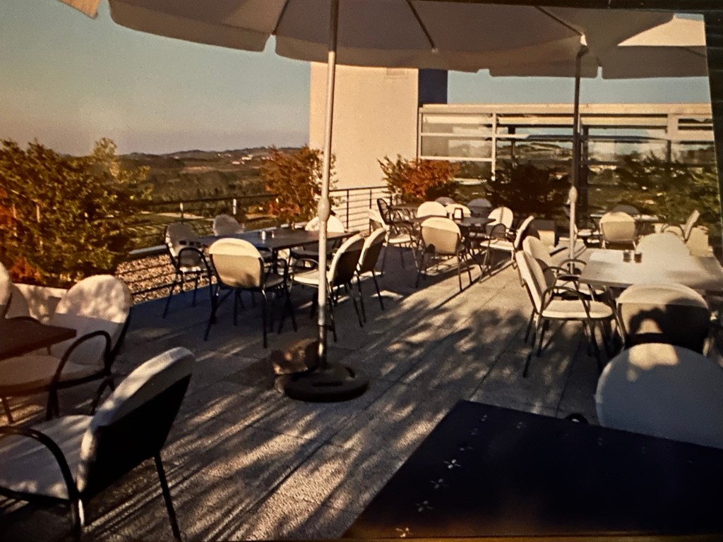 At the time of our trip to the Italian Piedmont, I didn’t yet have a smartphone. Do I didn’t have a camera with me all the time, and I rarely got pictures of what we ate. That was too bad, because breakfast at Hotel Ca de Lupo was spectacular. The array of fruits was breathtaking, and I could have filled up just on that. But in addition, there was a variety of cold meats and cheeses, and enough cakes and pastries to stock a bakery. Everyone’s favorite was a dense hazelnut cake made by the owner’s mother. Although there were tables indoors, most of us in the group took our plates outdoors to the terrace, where we could gaze across the valley as we enjoyed breaking our fast.