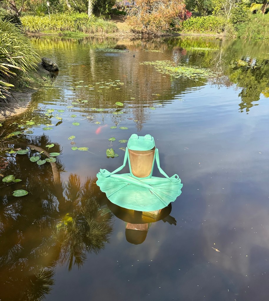 What a fun, if tiring, day! For the past several years, I have taken a group of friends from our church on a tour of Mounts Botanical Garden in West Palm Beach, where I am a volunteer guide. We did that tour this morning, on an absolutely perfect day. It was bright and sunny, with the temperature in the low 70s. Ideal conditions, lots of plants in bloom, and the frog sculpture exhibit made for a fun tour.