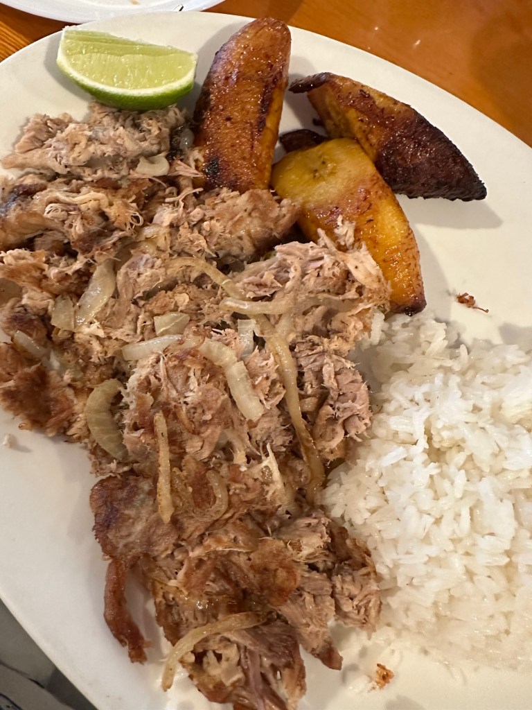 After the tour, we headed down the street to Don Ramon’s restaurant for a delicious Cuban lunch. Nobody ever leaves hungry! I ordered lechon asado, shredded roasted pork with onions, black beans and rice, and plantains. I like to cook Cuban food, and I think my results are pretty tasty, but there are no better black beans than Don Ramon’s. I wasn’t thinking, and took the picture before I spooned the cup of beans over the rice. I think I brought at least half of what was on the plate home, and Ken brought home leftovers of his chicken dish.