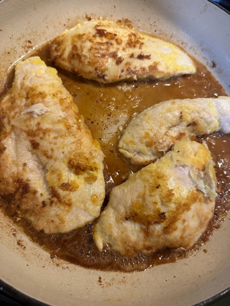 Anyway, I used my everyday oil to sauté thin cut chicken breasts for chicken Français. This is such a delicious recipe, and another where I wonder why we don’t make it more often. It goes together pretty quickly, and is a perfect dish for a special occasion meal. But it was great for a quiet weeknight dinner, too.