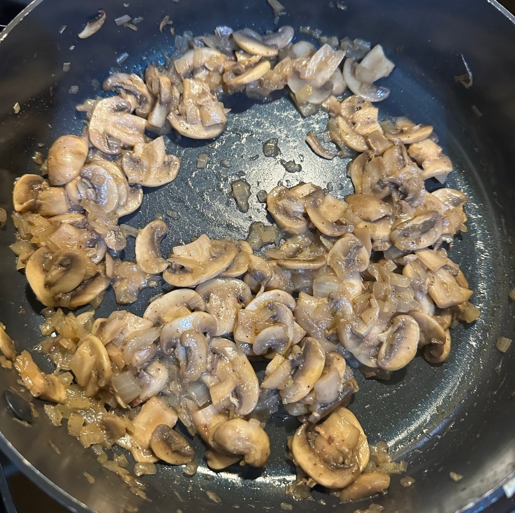 The recipe includes making an onion and mushroom topping for the fish. This is our grandson Luke’s favorite part. He loves to help sauté the veggies, mostly so that he can nibble on them. The kid loves mushrooms!