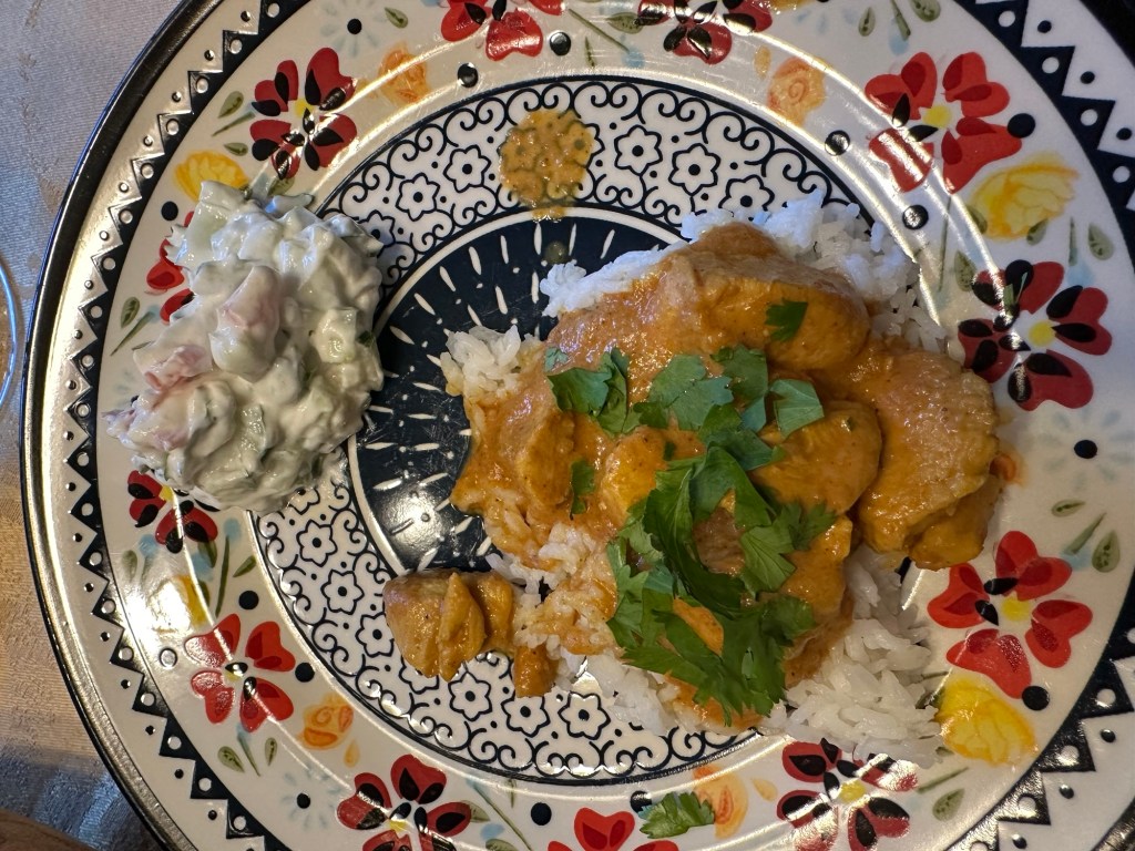 I made a recipe that I had originally planned for last Friday, chicken tikka masala. This is based on a Weight Watchers recipe, which seems like an odd coincidence, given the recent news about the company. Although it’s delicious, I expected that it wasn’t exactly authentic. As I researched, however, I found recipes that are all over the place, and I learned that there really isn’t a definitive recipe.