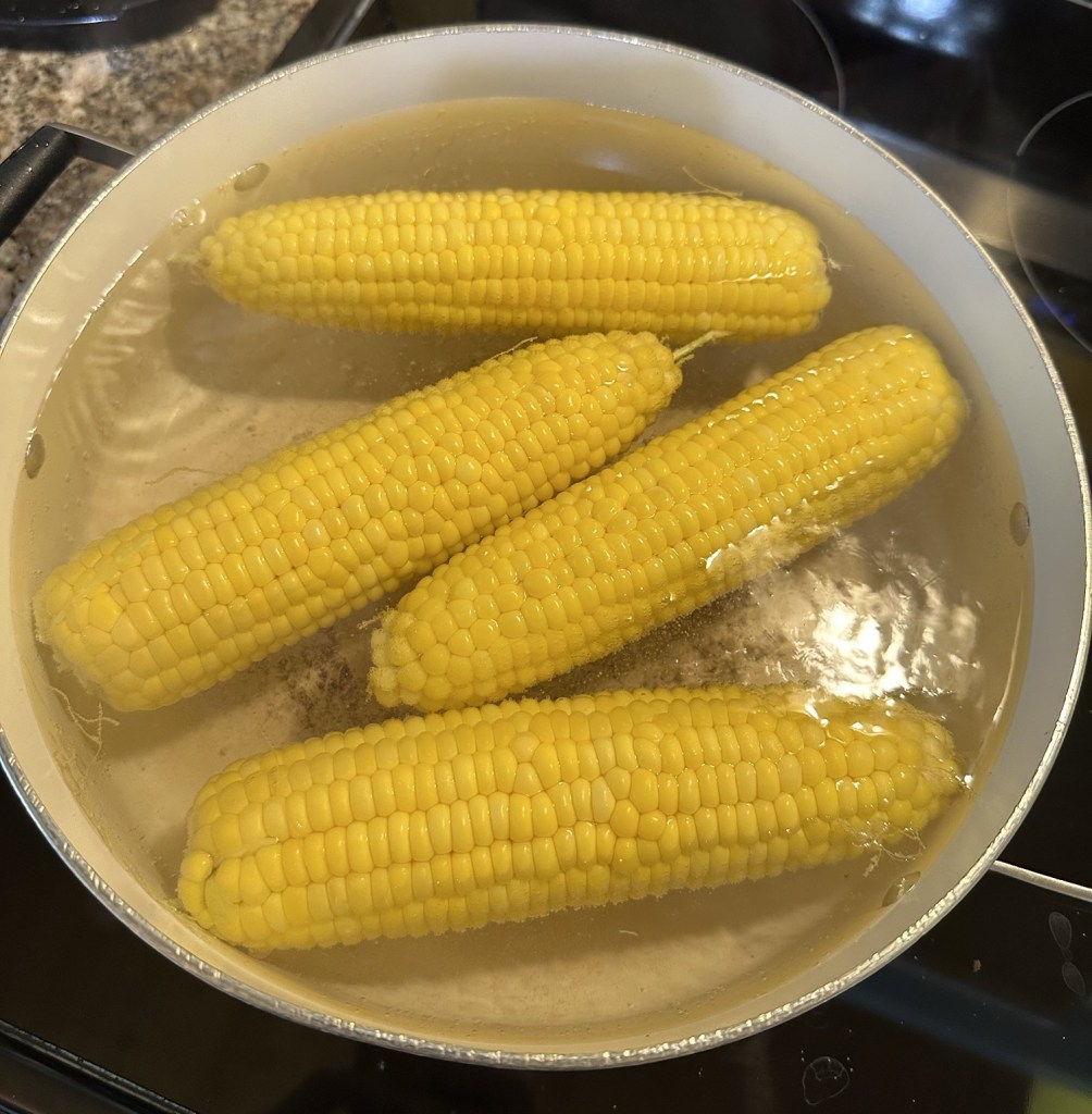 I expect that corn from the Glades (the Everglades agricultural area in western Palm Beach County) has all been harvested, so I’m not sure where corn is coming from currently, but it has been cheap and delicious. There are so many methods for cooking corn, but I do it the way I learned from my mother: add a tablespoon or two of sugar to a pot of water, bring it to a boil, add the corn, reduce the heat, and simmer for 10 minutes. I’m not sure what purpose the sugar serves; I suspect it had something to do with keeping the corn sweet. Today, almost all sweet corn varieties incorporate the shrunken-2 gene, which means its sugar content is high and it also has a slower sugar to starch conversion rate than older varieties. But I continue to operate on the “if it ain’t broke, don’t fix it” principle.