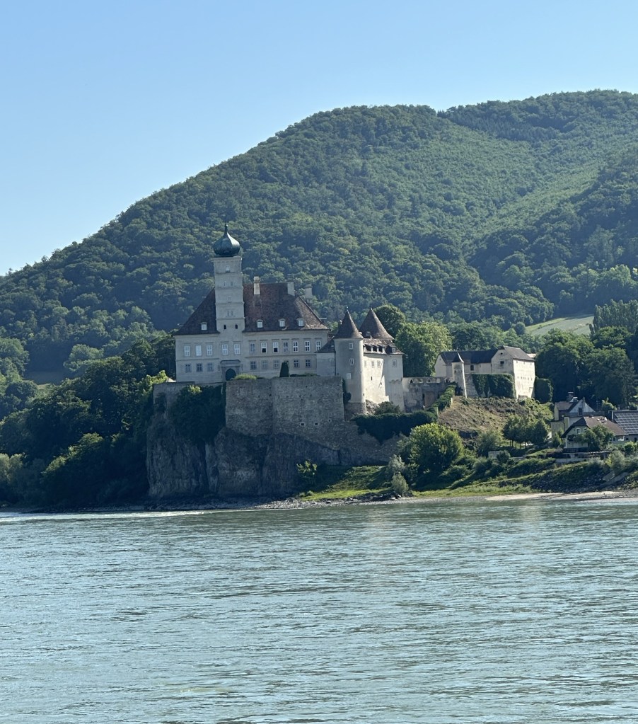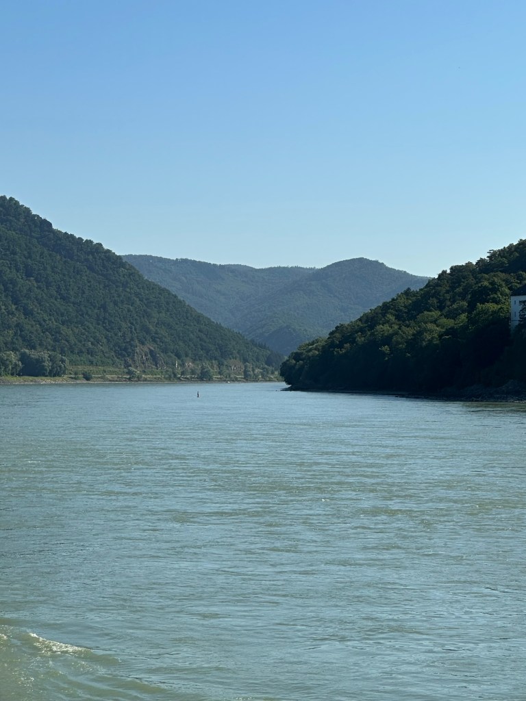 Wednesday was a highlight of the cruise. The morning saw our ship sailing through the Wachau Valley, one of the most scenic parts of the Danube. We found a spot on the top deck to enjoy the sights. I took just a few pictures 😂 And, because the valley is known for growing apricots as well as wine grapes, we were served apricot brandy as we entered the gorge. Quite the way to start the day.