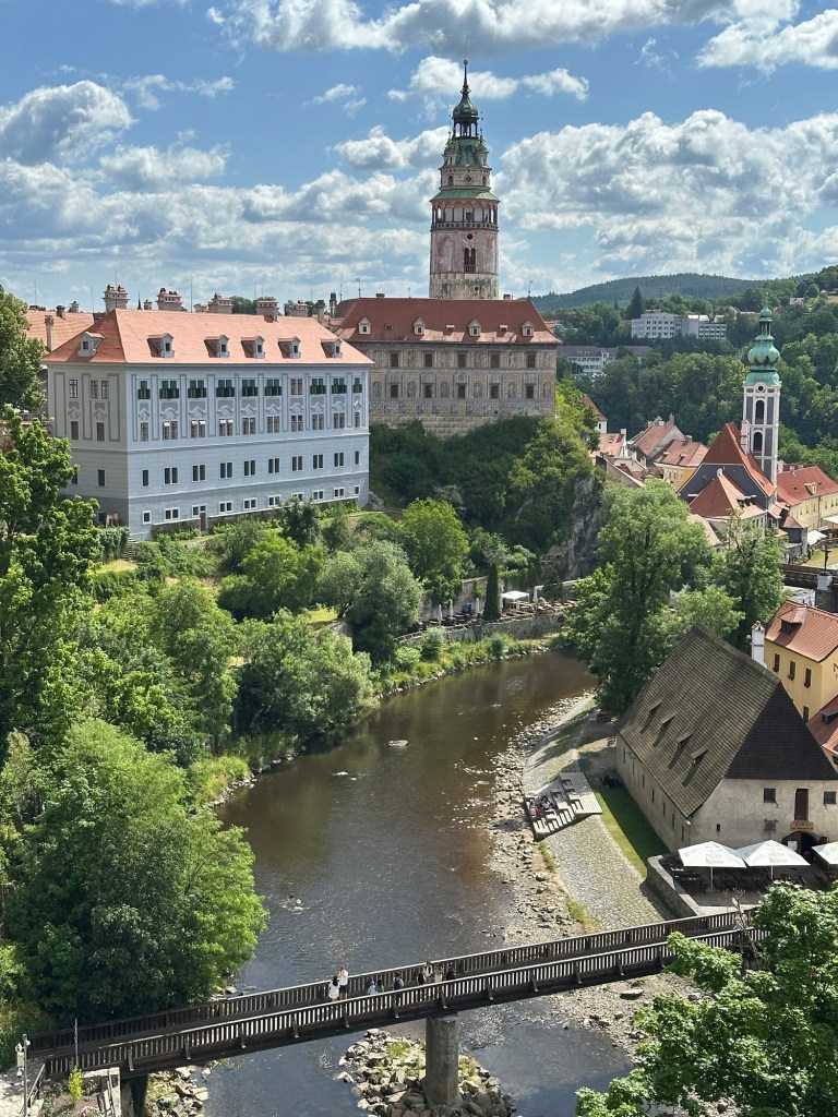 Day 2, for us, was an all-day excursion to the medieval town of Cesky Krumlov in southern Bohemia, in the Czech Republic, while the ship was docked in Linz, Austria. Yes, we had visited Cesky Krumlov when we were living in CR in 1993, and were interested in seeing any changes. There certainly were plenty! Where before, the entire town looked as if it needed pressure washing, now all the buildings are clean and brightly colored. I remember lots of scaffolding around church and castle towers, but those have all been restored. The town is a big tourist destination, as it’s a UNESCO world heritage site, so there are lots of shops and restaurants now. It was an interesting visit.