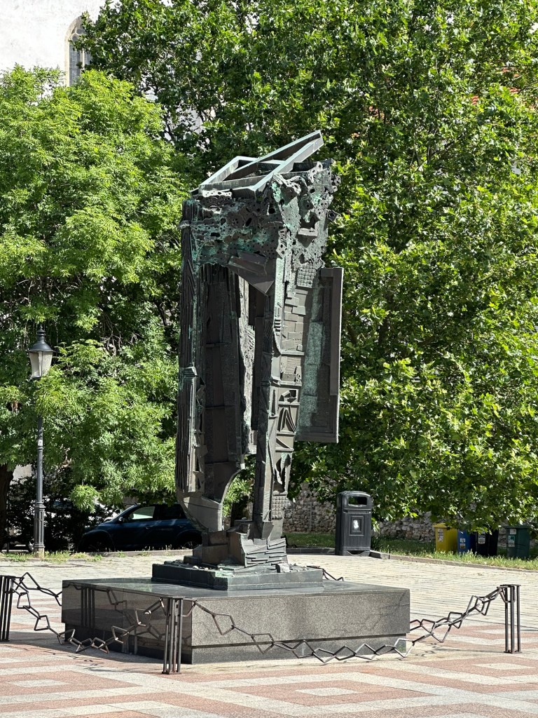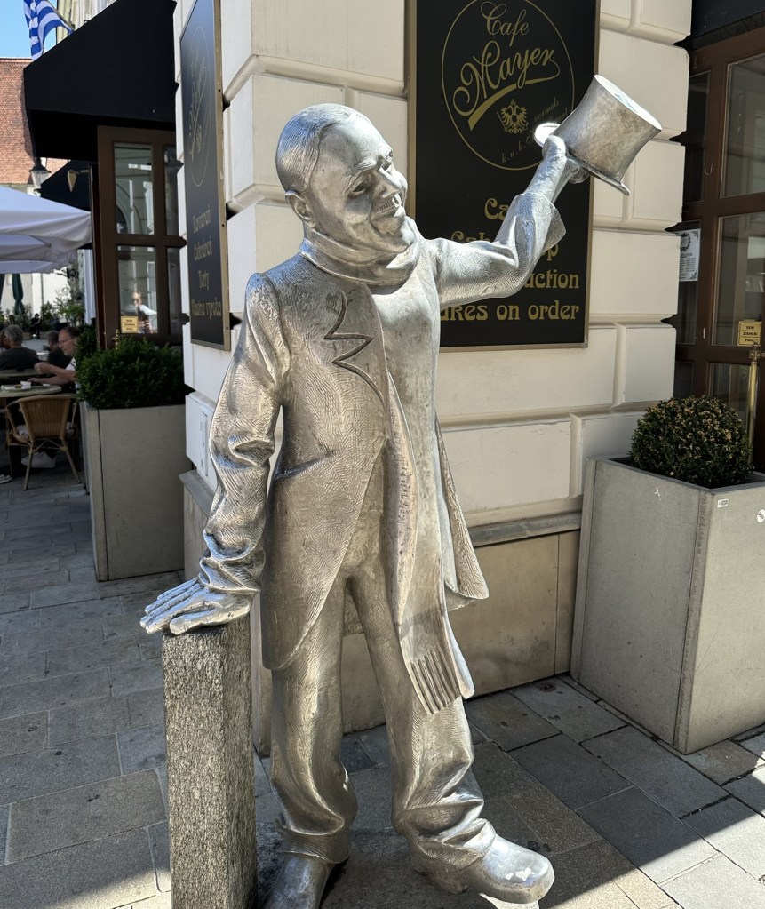 We were docked right in the Old Town at Bratislava, and we took advantage of the location to walk through this lovely city. It reminded me very much of Prague. As with every other stop, our tour included the cathedral, but just outside the cathedral is the city’s holocaust memorial, on the site of a demolished synagogue. The platform it stands on is inscribed with the word “remember” in Hebrew and Slovak.