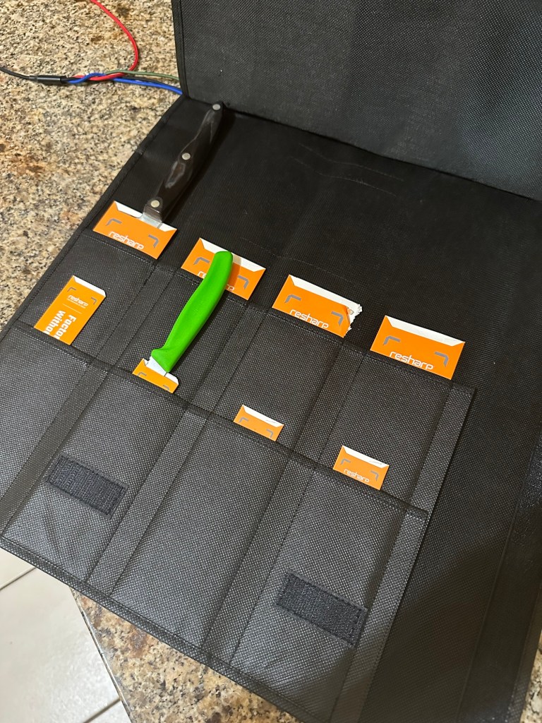 I’m taking along a chef’s knife and a small serrated knife. The chef’s knife I use on a daily basis is a Misen knife that I bought two years ago after using Ben’s while cooking at his house. But I will take my old chef’s knife, a Cutco knife that I’ve had for more 30 years, and which I had sharpened yesterday.