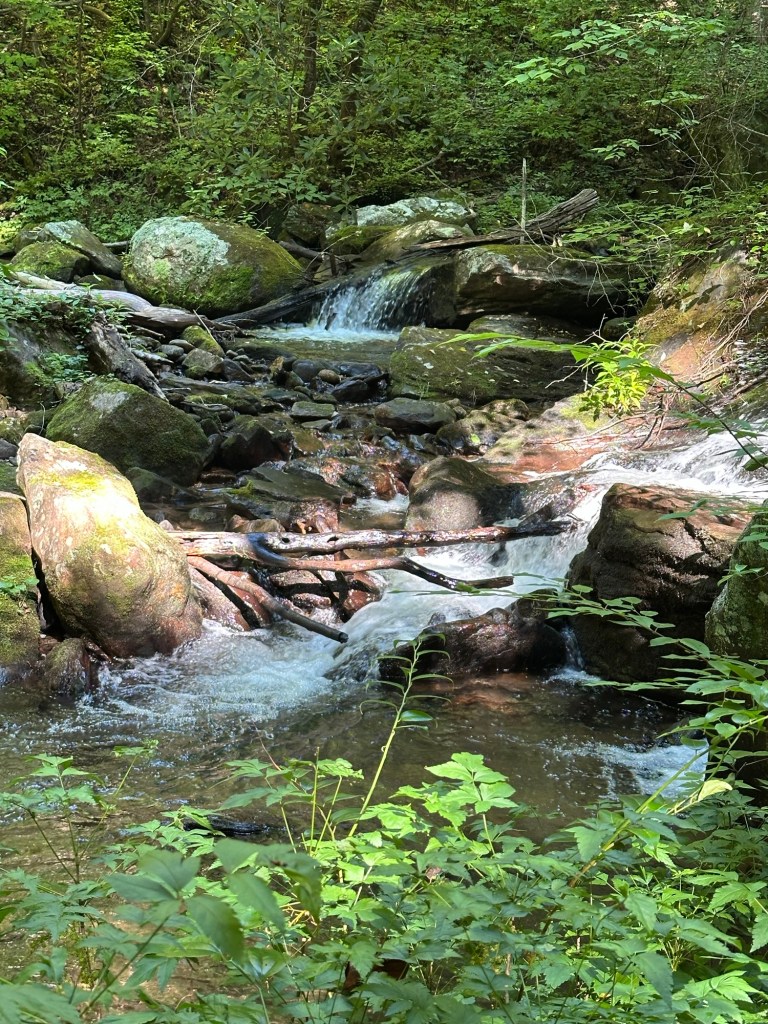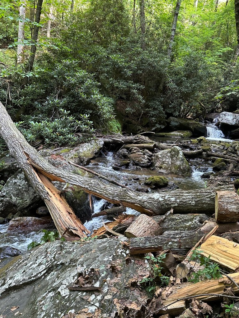 The area is heavily wooded, and the forest service usually leaves downed trees where they fall. Because of this, and because water levels vary depending on how much rain there’s been, the scenery changes with each visit. We saw a tree that clearly had come down recently, and there wasn’t as much water coming over the falls as we’ve sometimes seen, but that’s part of fun of revisiting.