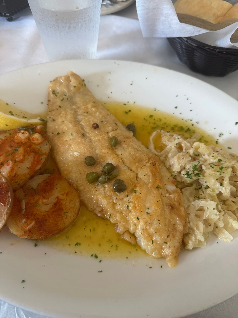 I wavered between the branzino and red fish specials that were listed, but ultimately opted for the redfish. Sautéed in olive oil and lemon, the sweet, delicate fish was a standout. It was also a very generous fillet, but I was determined not to leave any of it. So good!