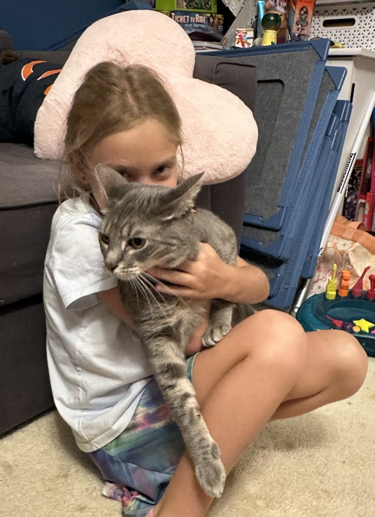 I got distracted yesterday, but with good reason. We drove to Orlando to spend the night with Ben, Annie, and Emmalyn. I couldn’t resist taking a picture of Emmalyn and Pebbles, the most patient cat on the planet.