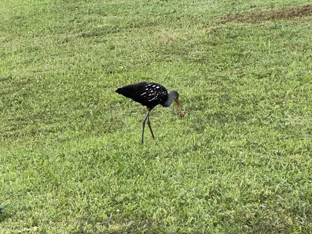 From this morning’s walk, a limpkin that didn’t fly away before I could get my phone out. It’s one of Florida’s rarer birds, and is a protected species. However, they’re not an uncommon sight on our walks. And once you hear their loud call you never forget it.