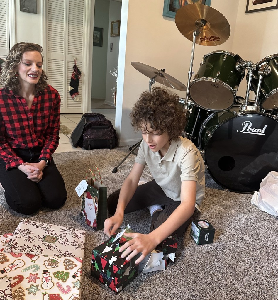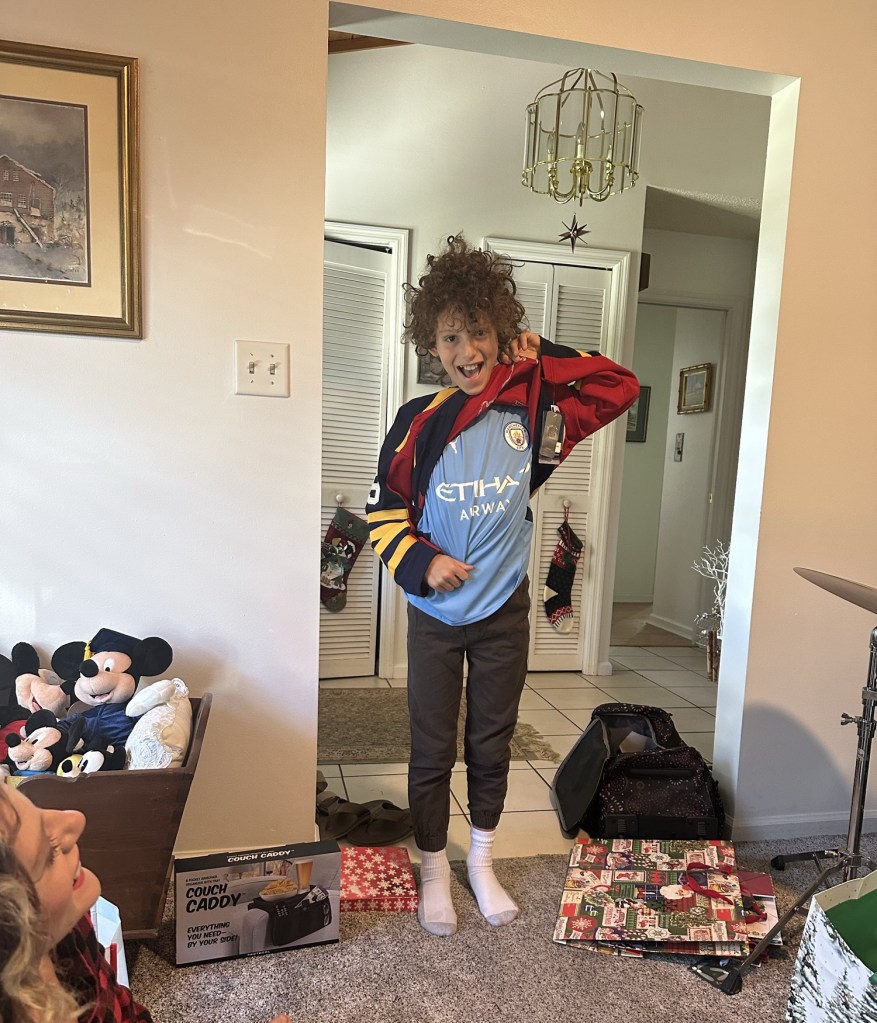 We did our gift exchange first, because it’s just not fair to make a kid wait for Christmas gifts. There were a lot of laughs. Dante is a New York Jets fan, but Ken and I pranked him with an Eagles ball cap. We got Alice, too, indirectly. When Luke stayed with before Thanksgiving, we realized that he loves to wear sports jerseys. We gave him one from our favorite English Premier League club, Manchester City. Since Alice is a huge Liverpool fan, she wasn’t thrilled that Luke put his new jersey on immediately, but he covered it up a little later with a Florida Panthers hockey sweater that she and Dante gave him.