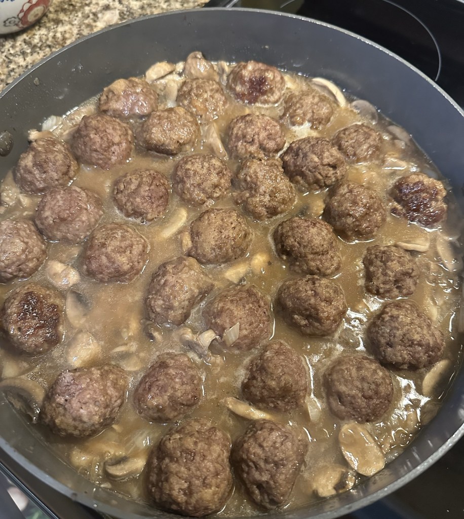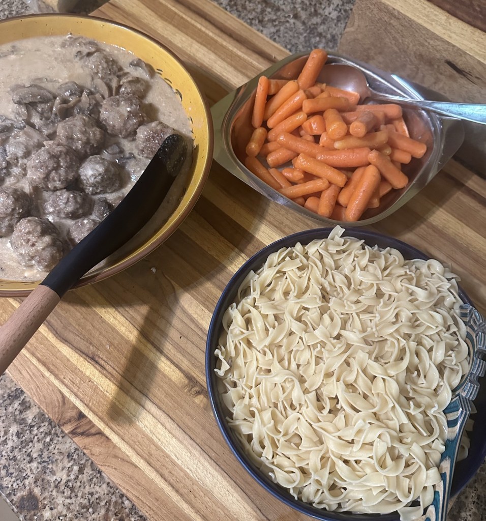 Then it was dinner time. We made one of Alice’s favorite dishes, meatball stroganoff. I say we because Ken and I were essentially co-chefs. He has been doing so much of the cooking (and everything else) the past few weeks, to allow me to rest and heal.