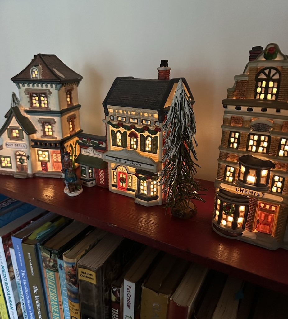 I hadn’t expected this Christmas to be any different from the last, but I hadn’t anticipated that it would be my turn to deal with orthopedic problems, pain, and limitations on what I can do. Those limitations were hard to accept at first. It bothered me that I couldn’t manage to unpack our “village,” which has decorated our bookcases for many years. Although we haven’t had much in the way of outdoor decorations in recent years, this year there are none. I admit to being angry and frustrated. Ken has been an absolute saint, because, in addition to taking on more of the day-to-day tasks, he’s had to put up with my moodiness.
