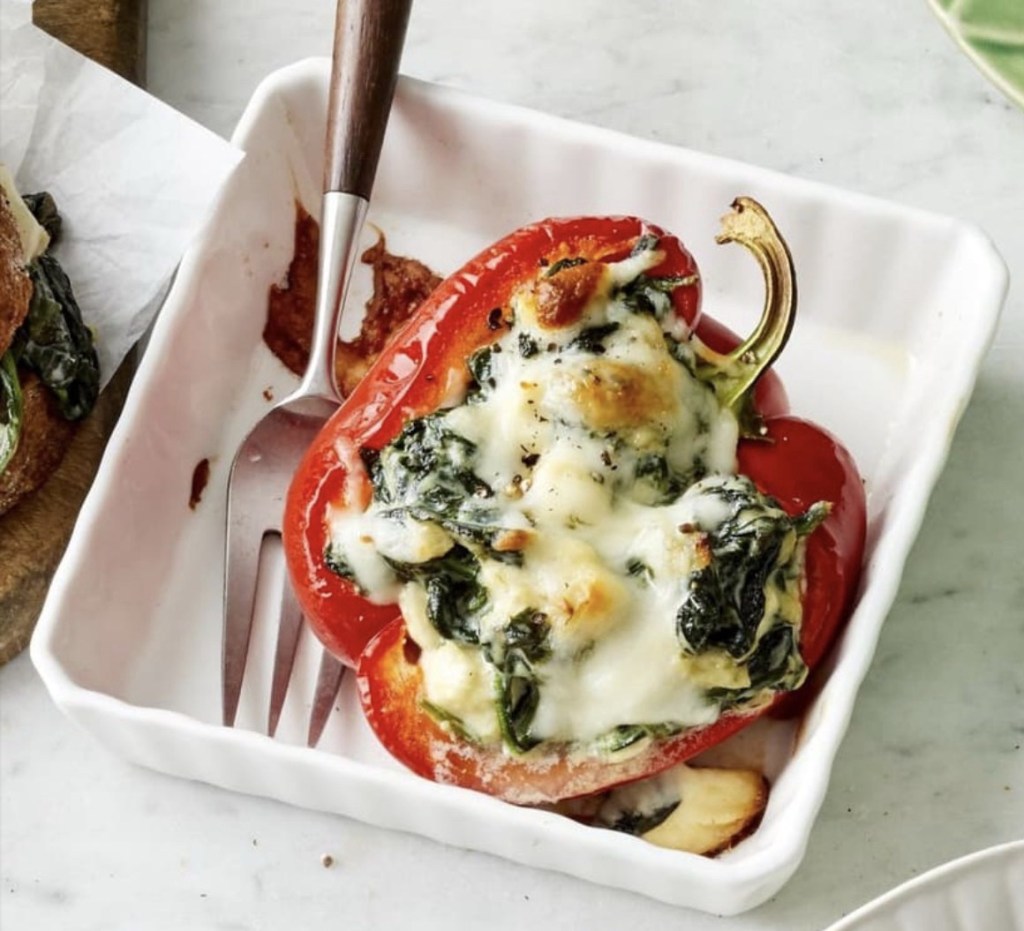 Spanakopita Stuffed Peppers. I love eating spanakopita, but I’ve never tried to make it myself. I use frozen phyllo dough for a couple of other recipes, and I’m sure I could make my own, but I’ve never felt the urge to invest that much time and energy. When I saw this recipe in one of the Cooking Light special interest issues, it really intrigued me as a healthier option. Soon.