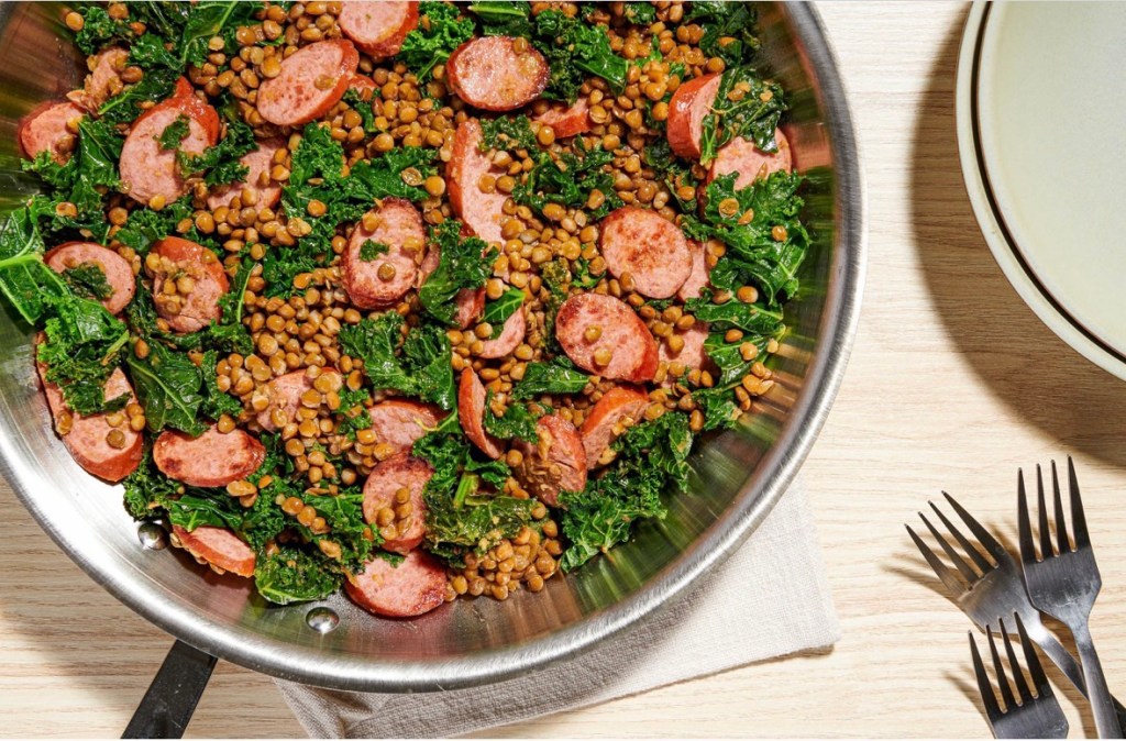 Skillet Turkey Kielbasa with Lentils and Kale. One of our resolutions for the new year is to start including kale in our diet. Turkey kielbasa is a healthier version of a traditional sausage that Ken introduced me to when we got married. This looks like another easy weeknight dinner.
