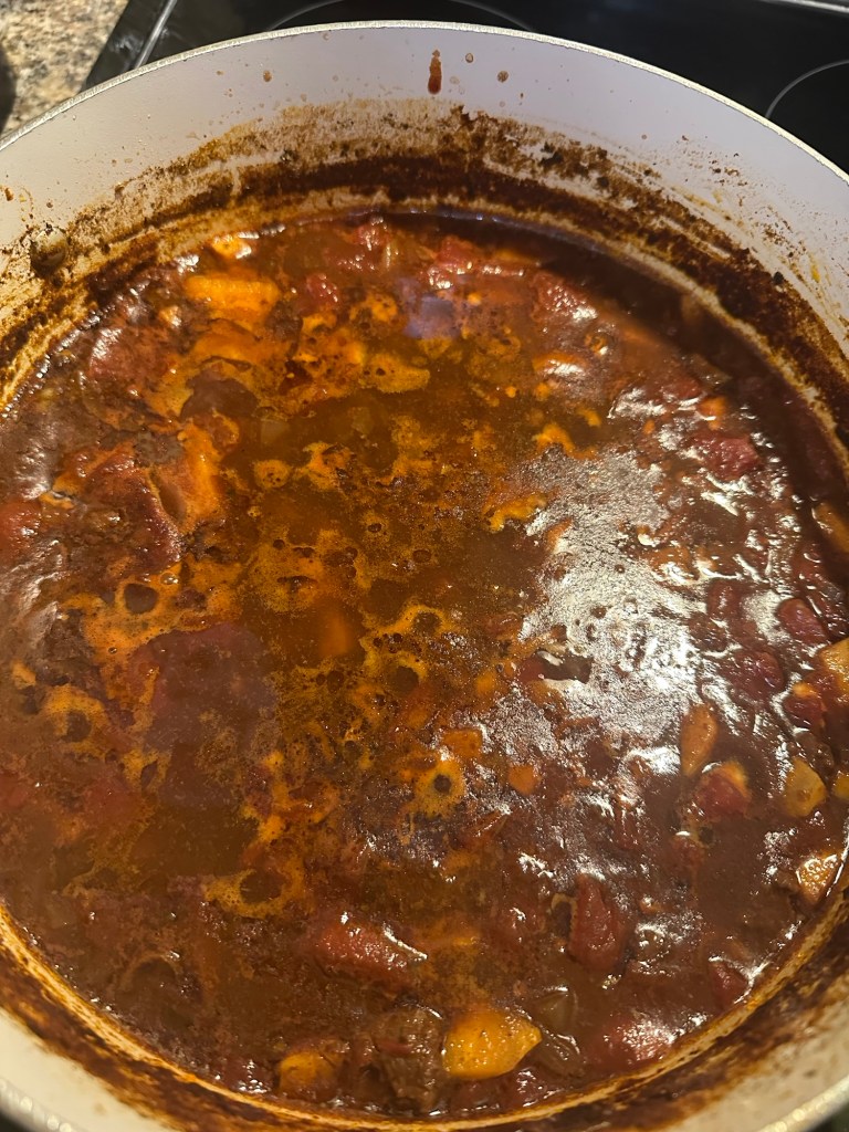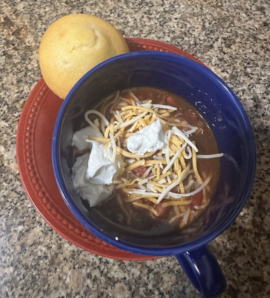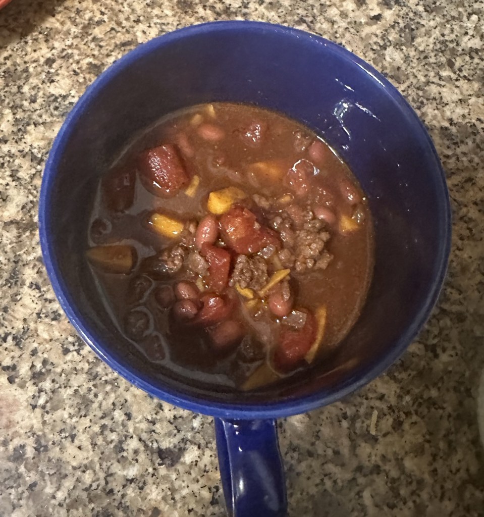 Once upon a time, I was known for my chili. Not that my original version was anything special: it was onion, maybe some green pepper, a pound of ground beef, a can of tomatoes and another of kidney beans, and my “secret ingredient”—a package of French’s Chili-O. In grad school, it was cheap, easy, could cook in the crockpot all day, and was very popular at any party Ken’s department threw. Since that group, both students and faculty, could find any excuse for a get-together, I cooked a lot of chili.