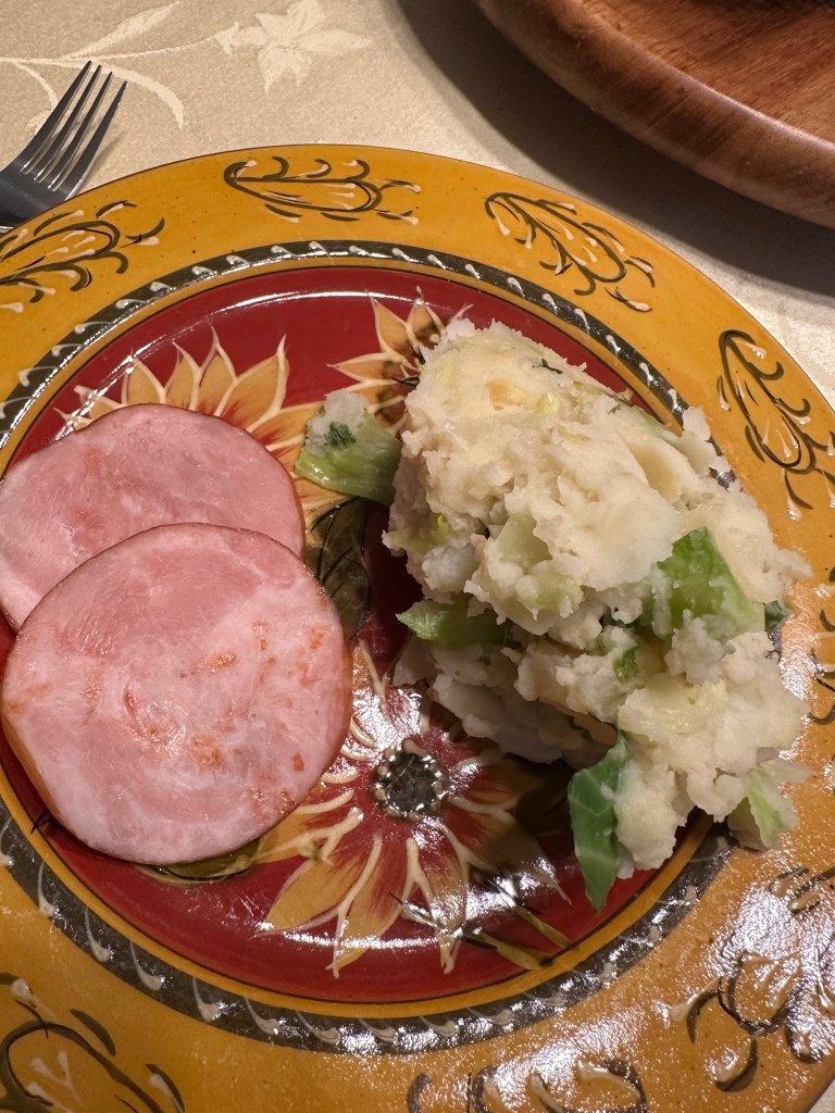 This year’s colcannon with Canadian bacon