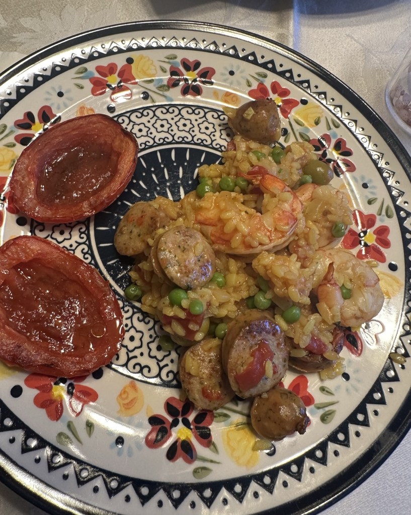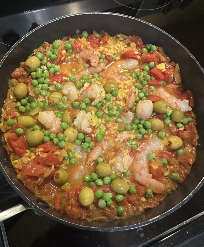 I’ve tried numerous paella recipes over the years, but Ken and I agreed, after I made the Hearty Paella recipe I found in the Mediterranean Made Easy cookbook a few years ago, that our search was over. I can’t speak to how authentic it is, but the taste reminds me of when we were invited to a paella party. Our friends had hired a chef who cooked paella in an enormous pan over an open fire. It was one of the most unique dinners I’ve ever had.